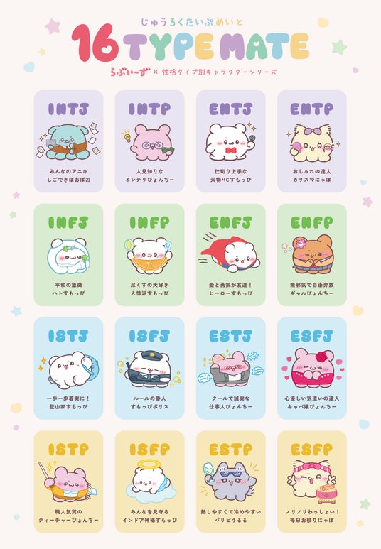 「16 TYPE MATE」は、性格タイプに着想を得た16の個性豊かなキャラクターで構成される、新感覚のキャラクターブランドです。