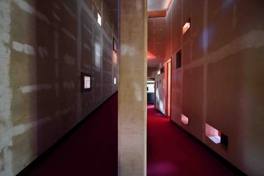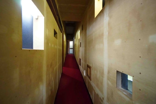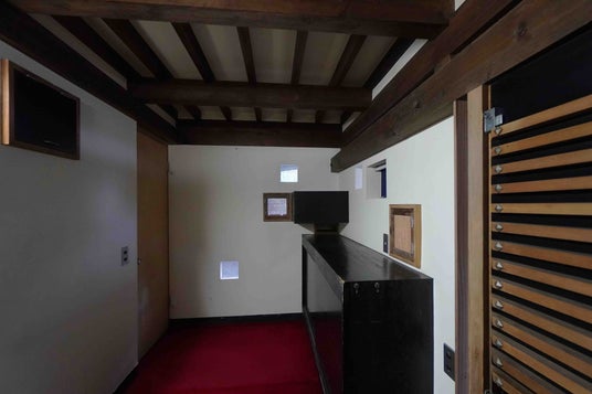 また、「泊まって学べる名住宅」をコンセプトに、「斜めの家」の設計図一式や、クラウドファンディング時に作成した渡邊洋治の設計図集、額入りA1パースなどの関連資料を常設しています。
