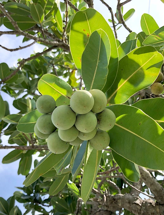 強い紫外線の環境下で育つ熱帯・亜熱帯地域の植物は、植物自ら身を守るための紫外線耐久効果が高いと言われています。その代表がタマヌやクロヨナの種子からとれるオイルです。 宮古島産タマヌオイル、クロヨナ種子油を中心に、池間島で無肥料・無農薬で育てたアロエベラやひまし油などの保湿美容成分を加え、自然由来指数100%を実現しました。