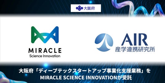 サイエンスに基づく「Open Well-being Innovation」を推進するMIRACLE SCIENCE INNOVATION株式会社(所在地:大阪市北区、代表取締役:宮川 潤、以下:MIRACLE SI)は、大阪府の「ディープテックスタートアップ事業化支援委託業務」に係る公募において、株式会社産学連携研究所(※1)との共同事業体「NQ Deep Tech Studio」(※2)として本事業を受託しました。