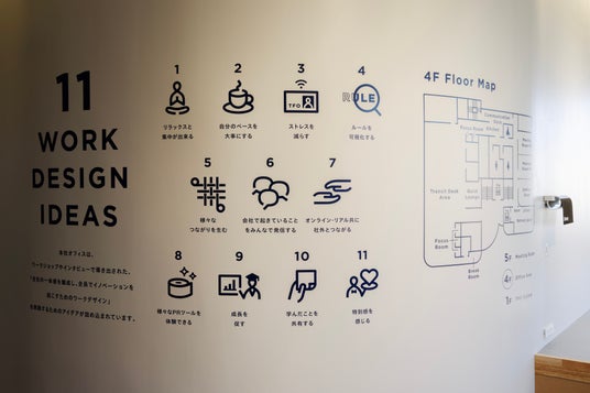 新本社オフィスでは、以下の5つの要素をワークデザインの柱とし、具体的な空間施策・仕組の施策として11のワークデザインアイデアを展開しました。