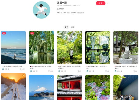 宿泊施設・観光地の発信をするインフルエンサー。25歳~34歳の層に強く、広州などの都市部や中国国外のユーザーに対して発信力がある。動画と写真・文字、両方での発信が可能。主に海外のユニークな場所などを発信している。(日本に限らない)