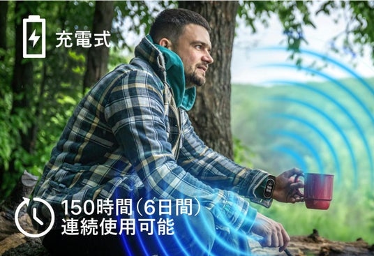 また、一度フル充電すれば約150時間の連続稼働が可能で、真夏のキャンプや旅行など長時間に及ぶレジャーでも電池切れの心配がありません。万が一バッテリーが切れても約30分でフル充電できるため、モバイルバッテリーや車載充電器さえあればすぐに再使用できます。