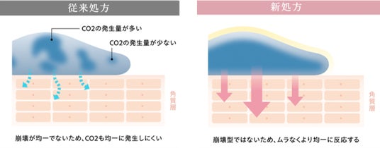 炭酸濃度・発生速度・pH値の黄金比率により、炭酸を均一に発生させ閉じ込めることで美容成分の浸透をサポート!内側からじんわりとめぐる肌へ。