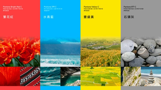 ▲「繁花盛開 We Bloom!」-色彩コンセプト「鮮花紅」「水青藍」「石花紅」「豐盛黃」「石頭灰」を核とする配色