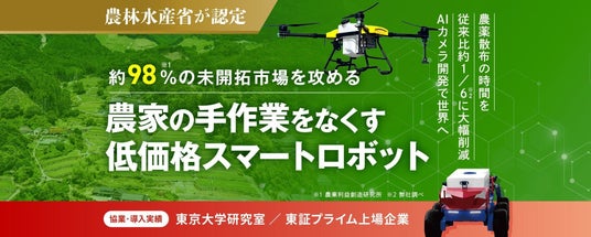 日本の農業分野では、作業の担い手不足や高齢化が顕著となり、農薬散布などの重労働を中心とした業務の自動化・省人化が急務となっています。とりわけ、ドローンを導入している農家は全体の数%にとどまっており、まだまだ市場には未開拓の余地が残されています。