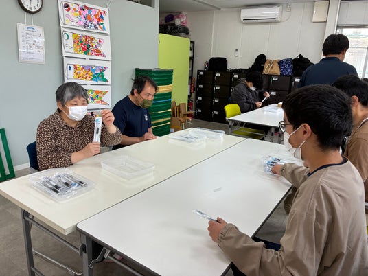 作業だけを1日を通じて行う方がいれば、バランスボールを使った体操やお絵描きなどの創作活動などの余暇活動を合間に楽しむ方もいらっしゃいます。