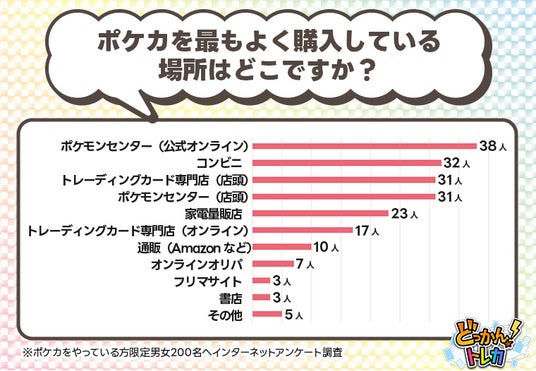 また、コンビニやトレーディングカード専門店など、公式オンラインや店舗以外での取り扱いも増えており、ポケカが幅広く普及していることがわかる結果となりました。