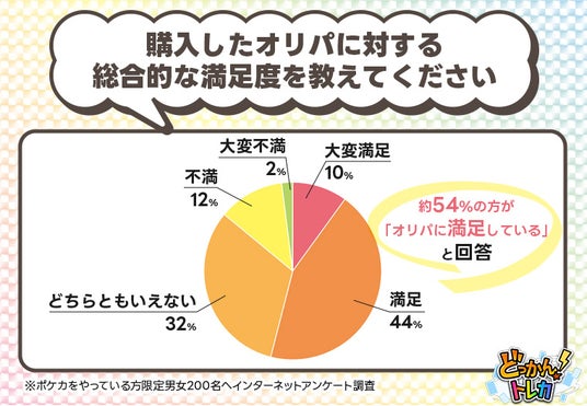 購入したオリパの満足度に関する調査では、購入者の約54%が満足していると回答しており、その中でも10%の方は「大変満足」と回答しています。