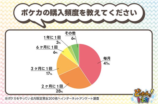 毎月10,000円以内の予算でポケカを購入している方が多い中、購入頻度について調査した結果、約41%の方が「毎月購入している」と回答しています。