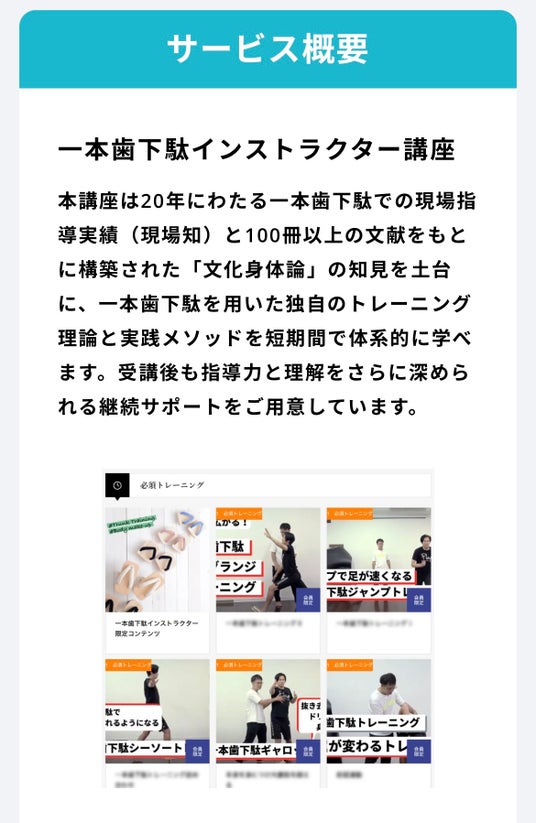 事業内容:一本歯下駄の企画・販売、トレーニングメソッド開発、指導者育成事業など