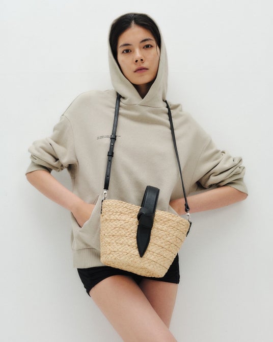 ノット(結び目)がサイドについた「TANY mini side」。シンプルを極めたシルエットで、手編みのラフィアの美しさが目を惹くデザイン。モダンな装いにも、カジュアルなスタイルにもそっとなじみます。レザーの内ポケットがついているので、 キャッシュレスのお財布代わりにも。すっきりとしたシルエットと、より都会的で洗練された印象に仕上げました。スマートに持ちたいシーンや、 きちんと感を演出したいスタイルにもおすすめです。同じサイズ感でも、TANY miniとはひと味違う表情を楽しめるモデルです。