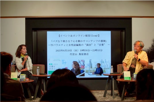 雑誌とテレビという異なるメディアの現場を知る2人によるクロストークは、「伝える力の本質」に迫る濃密な時間となりました。テレビプロデューサーの角田陽一郎さんは、女性の感性や言葉の背景が“見える化”されていて、男性には仕事にもプライベートにも役立つ本と評価。対談では、「届け方」の設計における男女差やメディア特性による表現の違いへと展開。感性と論理、直感と構造、男性と女性の“受け取り方”の違いをどう言語化し、どう伝えるかという問いが、深く掘り下げられました。