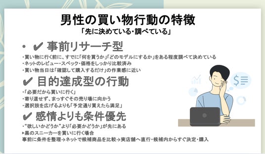 男性は事前に欲しいものをリサーチして目的物を買う。