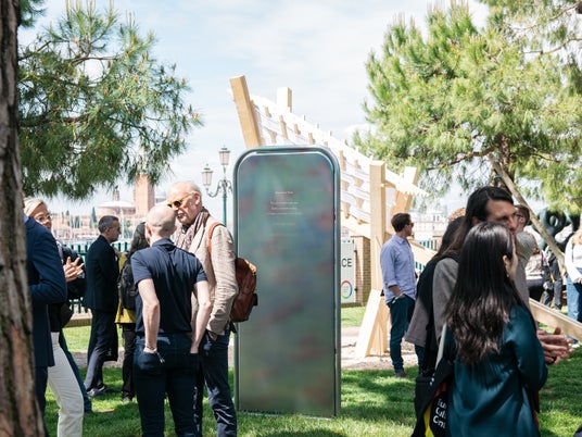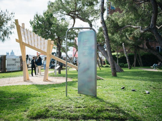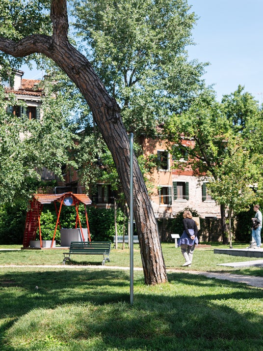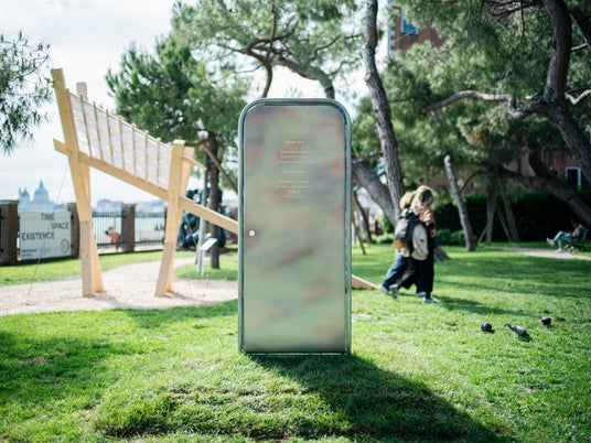*《Anywhere Door》イタリア・ヴェネチアでの写真。ヴェネチア・ビエンナーレ国際建築展期間中に開催される European Cultural Centre 主催の Time Space Existence 公式招聘作品としてマリナレッサ庭園にて発表。(写真:田中克昌)