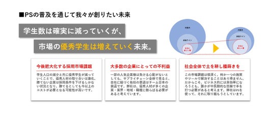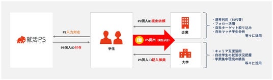 就活プロフィールシート(以下PS)は、学生の【学歴】【人生経験】【実績】【価値観】などのパーソナルレコード(これまでの人生の歩み)が一元的に記録・管理され、企業が共同で活用する学生データベースです。就職活動におけるイベント参加やOBOG訪問、選考応募の際などに学生が企業へ提出(閲覧承認)することで、企業がより深く、正確に学生を理解するためのツールです。