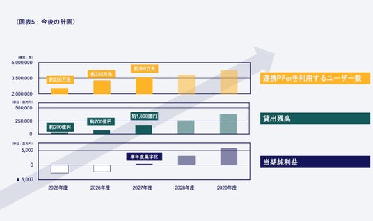 今後3年間で連携するPFerは30社程度、総利用先数を約360万先にまで増やし、01Bankのサービスを提供する中小事業者を拡大することで、貸出残高を約1,600億円まで積み上げ、3年目の黒字化を目指します。