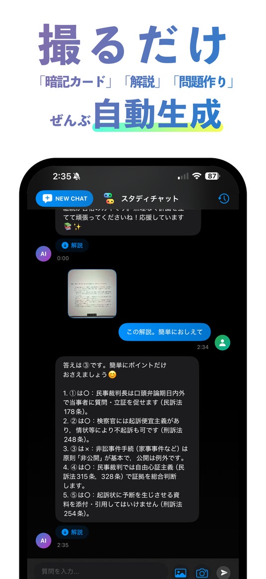 【期間限定プロモーションコード配布中】問題をカメラで撮影するだけでAIが即解説!暗記カード生成も、チャットでAI先生に質問し放題。