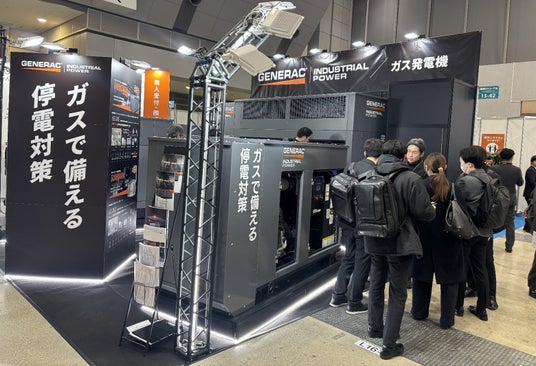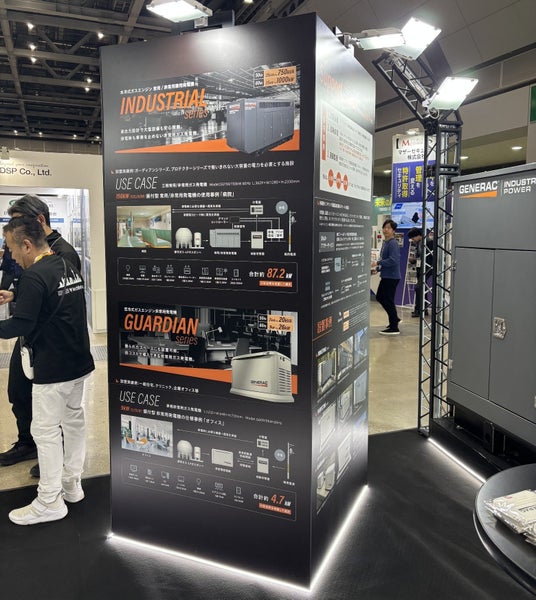 【写真1】GENERAC 非常用ガス発電機 展示ブース全景
