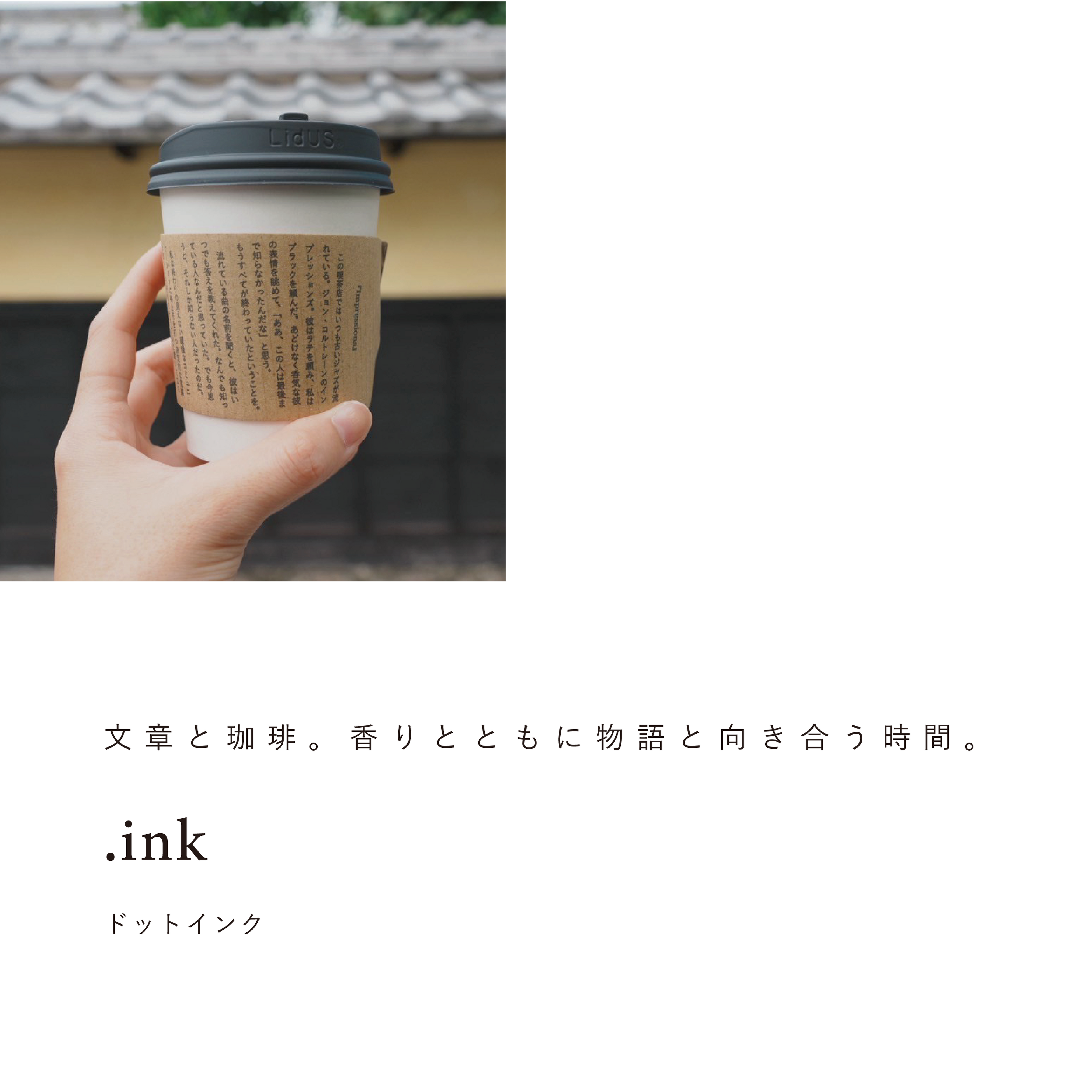 「.ink」では「文章と珈琲」をテーマにオリジナルの物語をスリーブに書き出し、珈琲とともに提供している。珈琲は、物語に合わせてセレクトした豆を使用。多くの人が失ってしまった『文章の世界に浸り込む時間』を作り出している。