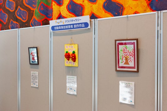 自動車事故被害者への支援の必要性や安全運転の意識を高めてもらうことを目的に、自動車事故被害者(交通遺児や重度の障害を負った方)が描いた絵画・書道等の創作品を展示します。