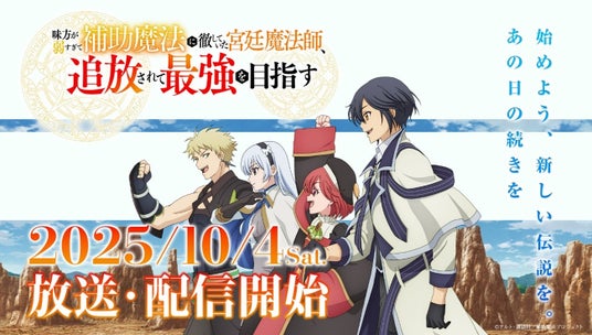 株式会社サイバーエージェント(本社:東京都渋谷区、代表取締役:藤田晋、東証プライム市場:証券コード4751)は、2025年10月4日(土)より、テレビ朝日系全国24 局ネット“IMAnimation”枠・BS朝日・AT-Xにて順次放送、ABEMA・U-NEXT・アニメ放題にて独占配信を開始するTVアニメ『味方が弱すぎて補助魔法に徹していた宮廷魔法師、追放されて最強を目指す』のメインPV第1弾および、キービジュアルを初公開いたしました。