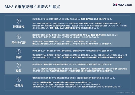 売主ファーストを掲げるM&A Lead株式会社(本社:東京都渋谷区、代表取締役:坂本 慧)は、事業譲渡を検討する経営者様向けに『永久保存版・成功するM&A入門書』を無料公開しました。