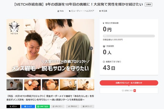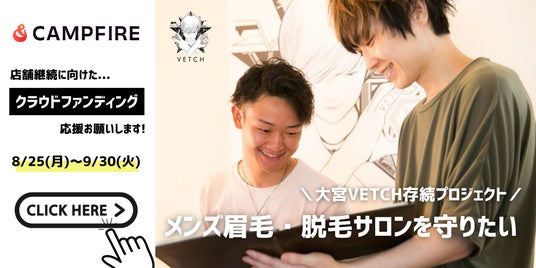 〈埼玉・大宮VETCH存続プロジェクト〉完全オーダーメイド施術で「あなたらしさ」を引き出すメンズ眉毛・脱毛サロンVETCHを守りたい! ~通い放題リターンで未来を応援~