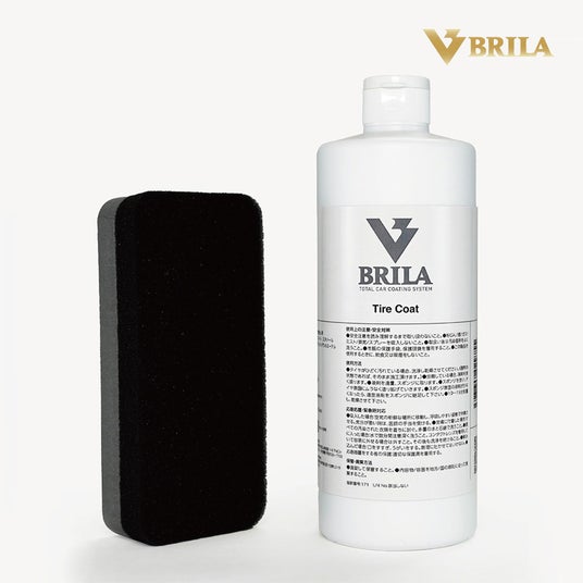 BRILAタイヤコート水性ながら速乾性を持ち、過度なギラつきを抑えた新品タイヤの艶感を取り戻します。また、油性タイプのような変色を抑えタイヤ素材を痛めません。