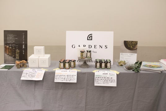 プロダクト「GARDENS」の販売ブース。全国の国産ハーブと厳選された海外ハーブのみを使用したハーブティー