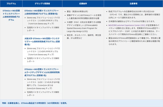 STOmics × MGI 空間トランスクリプトーム技術研究助成プログラム 日本