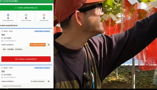 農業就業人口は2000年の240万人から2023年には116万人へと半減し、平均年齢は68.7歳に達しています(農林水産省)。「作業中に記録できない」「外国人スタッフへの指示が伝わらない」「ベテランの知見が属人化している」といった課題が現場を圧迫しています。