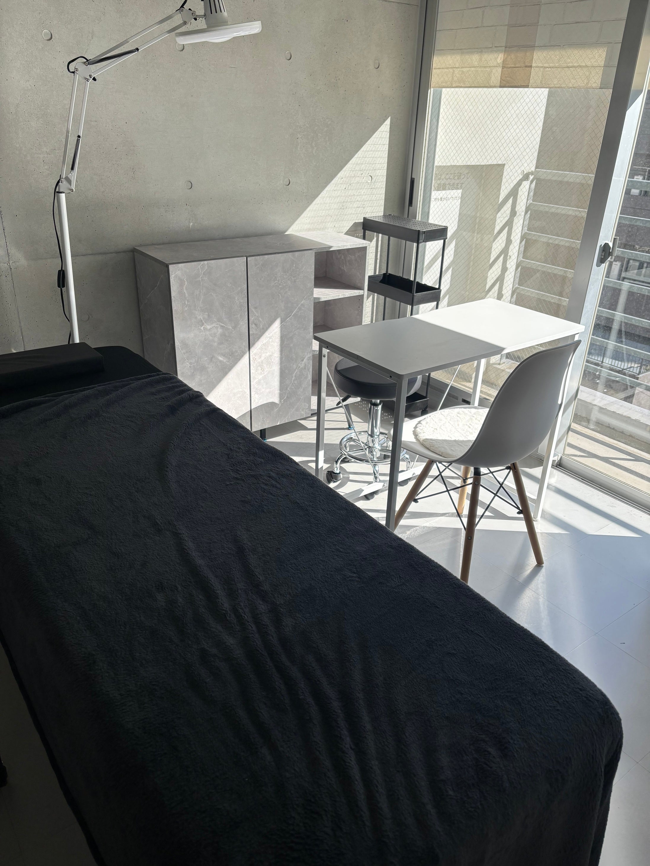 1スペースづつ仕切られた練習スペース/ベッドも完備handやfootジェルの練習も可能