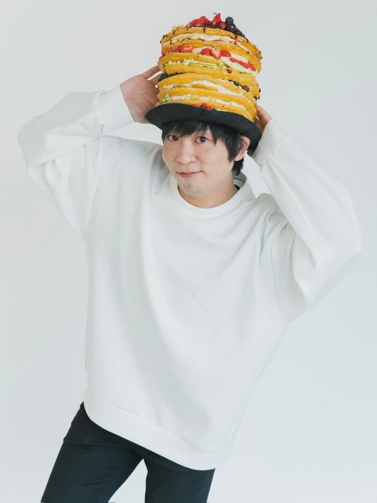 特注のパンケーキハットをトレードマークに、唯一無二のスイーツ芸人として活動をはじめ、