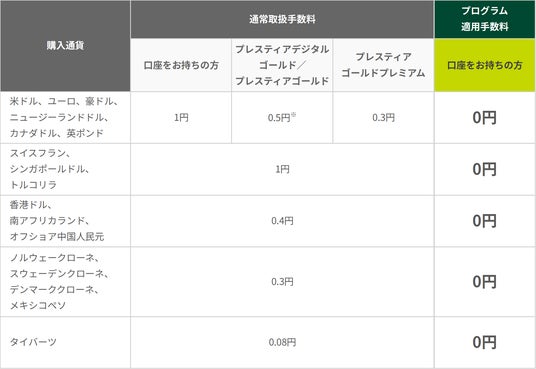 ※プレスティアデジタルゴールドのお客さまの場合、購入時の為替手数料はお取引チャネルにより異なります。