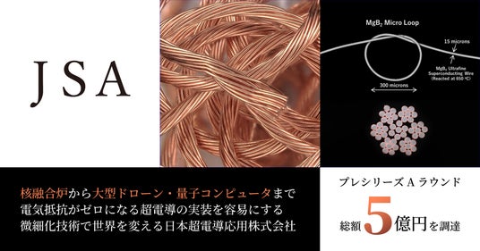 日本超電導応用開発株式会社(本社:神奈川県茅ヶ崎市、代表取締役:大坪正人、以下JSA)は、プレシリーズAラウンドにおいて、UntroD Capital Japan株式会社(本社:東京都港区、代表取締役:永田暁彦)が運営するリアルテックファンド4号投資事業有限責任組合を割当先とする第三者割当増資を実施し、2024年10月のJ-KISS型新株予約権発行とあわせて総額5億円の資金調達を完了いたしました。