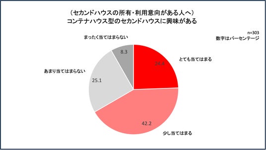 最後にアーススマートが新たに提案する「コンテナハウス型のセカンドハウス」について、意識を訪ねました。「コンテナハウス型のセカンドハウスに興味がある」と答えた人(「とても当てはまる」+「少し当てはまる」)は66.6%と、高い関心が明らかになりました。