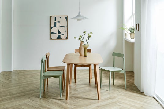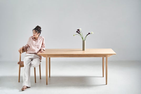 木製家具は、長年にわたり家具製造に携わってきた工場を含むパートナーとともに製作。素材には、耐久性と美しい木目を兼ね備えたオーク材を中心に使用し、日常使いしやすいよう、木の風合いを活かしたマットなPU塗装で仕上げています。
