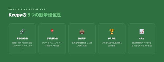 - 構造的優位性:販路×物流×拠点を統合した単一プラットフォーム