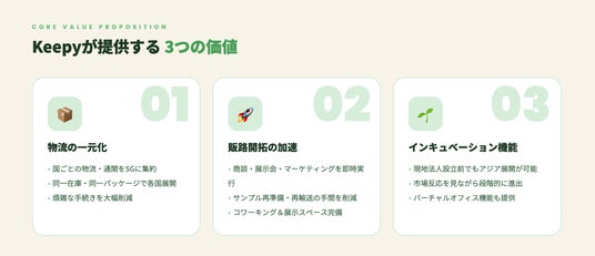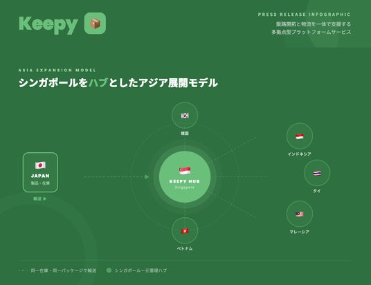 商業施設の再生事業を手掛ける日本アシストグループ(本社:日本/シンガポール)は、2026年3月17日より、シンガポールを起点にアジア市場への展開を目指す日系企業およびスタートアップ企業を対象に、「販路開拓」と「物流」を一体で支援する多拠点型プラットフォームサービス「Keepy(キーピー)」の提供を開始します。