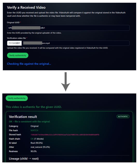 AI-VideoAuth(TM) は、真偽を判定するだけでなく、