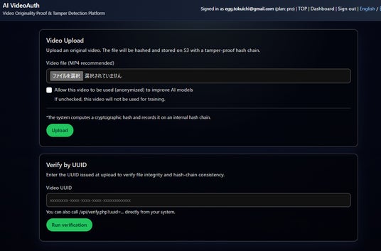 動画真正性証明プラットフォーム「AI-VideoAuth」