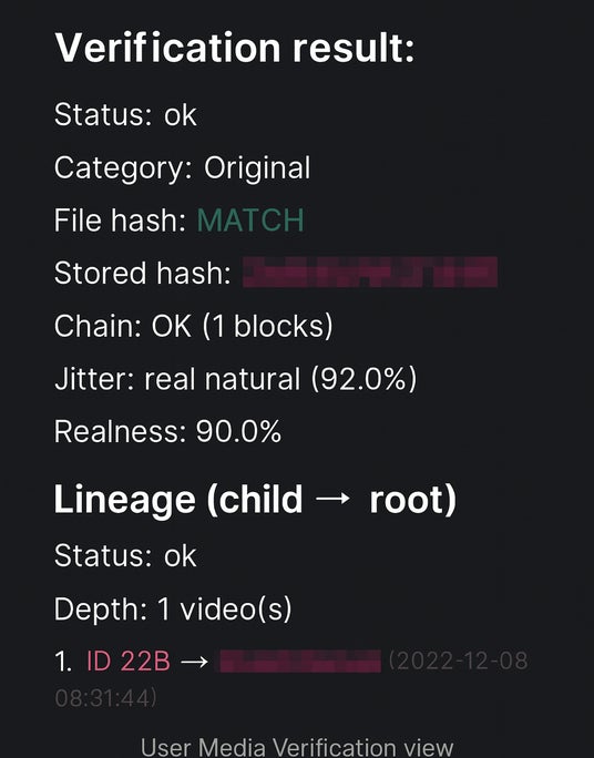 登録時点の動画状態とその後の一致・不一致を改ざん不能な形で証明。ーー