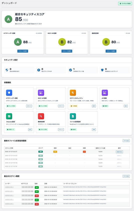REST API・ヘッダーをスコアで可視化。制作会社の“標準運用”を実現する国産セキュリティプラグイン