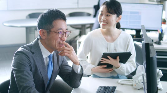 CMで伝えていくことは、「デジタル新時代における身近な相談相手」です。AIの登場などで様々なサービスや技術がひしめき合う現代のビジネス現場で、様々な業界にフィットする東計電算のITソリューションへガイドする存在として堀田さんをアドバイザーとして描きます。