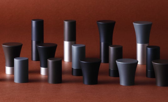 抜き勾配のない幾何学的な輪郭線。Φ27.5×45mmのスマートなゴムヘッド(AT1)は、どこにでもありそうなふつうのデザインに見えますが、製造は困難をきわめます。APLUS AT は、この上さらに、ゴムの表面に微細なシボを刻み、しっとりと落ち着いたマットな「肌」を実現。ステンレス・ショットブラストとの繊細な調和を求めて、シビアなこだわりをもって開発を進めました。