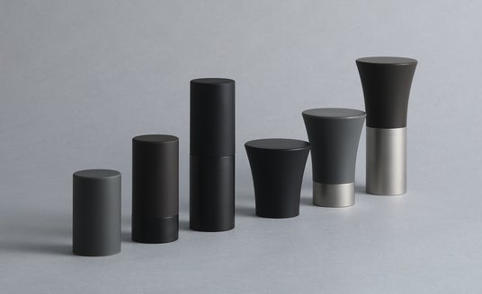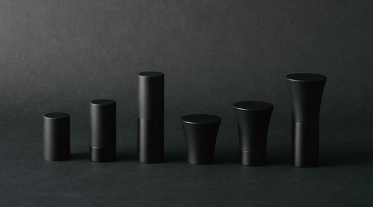 ステンレスの切削加工でしか実現できない、持ち重りのするソリッドな存在感が魅力です。「最高級」の質感を求め、また屋外・半屋外での使用を想定し、開発当初からステンレス素材(SUS304)にこだわりました。表面処理は、粒度を抑えた上品なショットブラスト。自然素材や近年の表現力ゆたかな床材にもなじむ、趣きのある「肌」を実現しています。