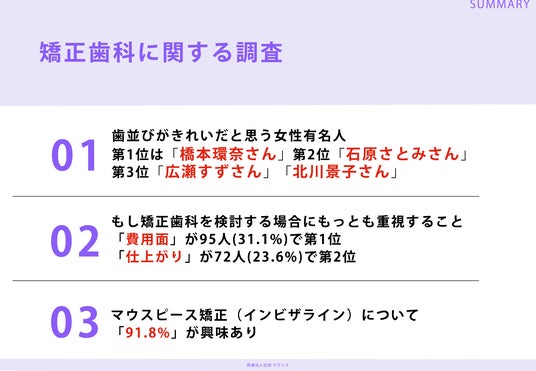 今回は、きれいな口元に興味・関心があるZ世代の女性304名を対象に「歯並びがきれいだと思う女性有名人ランキング調査」を実施しました。