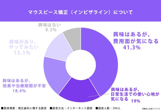 マウスピース矯正(インビザライン)やラミネートべニアなどの審美治療を行っているクラリス歯科・矯正歯科 (所在地:国分寺市、院長:引野貴之、https://oralbeautyclinic-clarisse.com/)は、きれいな口元に興味・関心のあるZ世代の女性304名を対象に、矯正歯科に関する調査を実施しました。