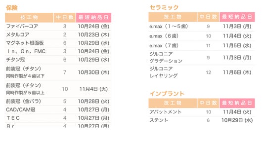 歯科技工所が、納期や休業日、お知らせなどの情報を